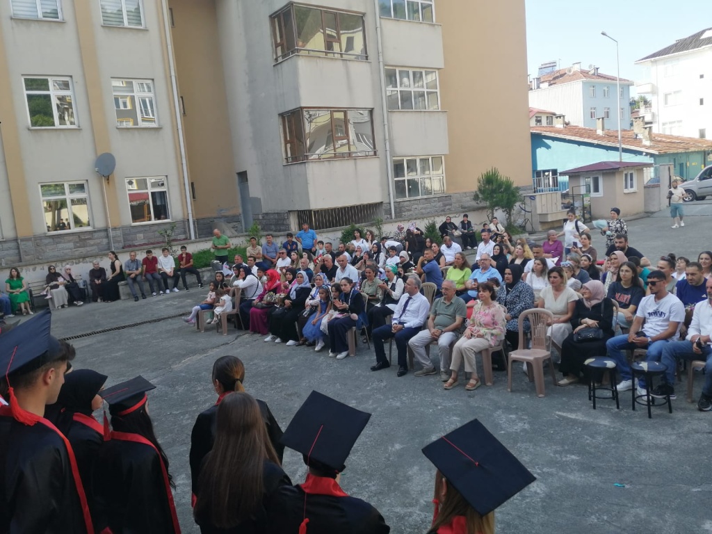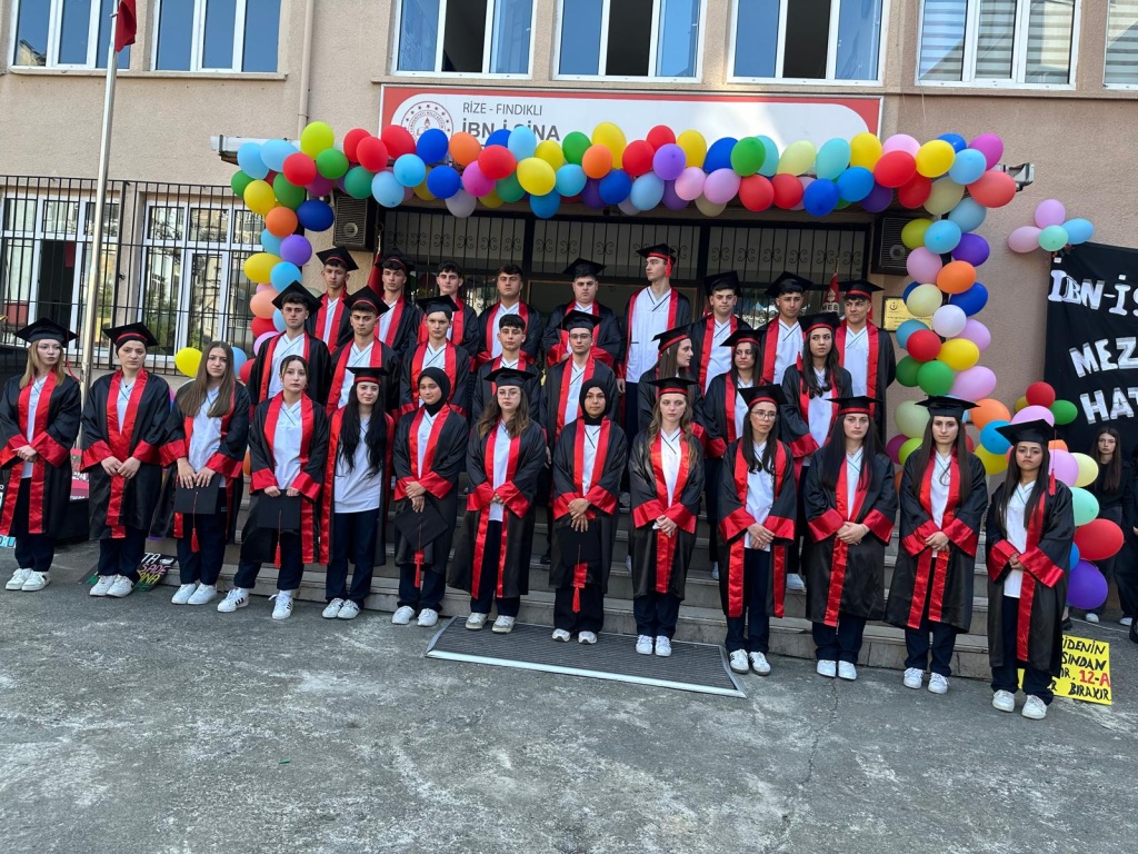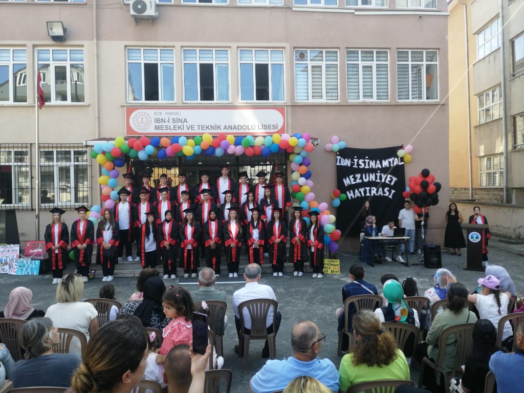 Okulumuz son sınıf öğrencilerine okul bahçesinde mezuniyet töreni düzenlendi. Dört yıldır okulumuzda misafir ettiğimiz öğrencilerimizi 19 Haziran Perşembe günü yapılan törenle uğurladık. İbn-i Sina Mesleki ve Teknik Anadolu Lisesi ailesinin özenle yetiştirmiş olduğu bu gençler okulumuza veda ederken vatana ve millete hayırlı birer birey olmak üzere yeni hayatlarına merhaba dediler.